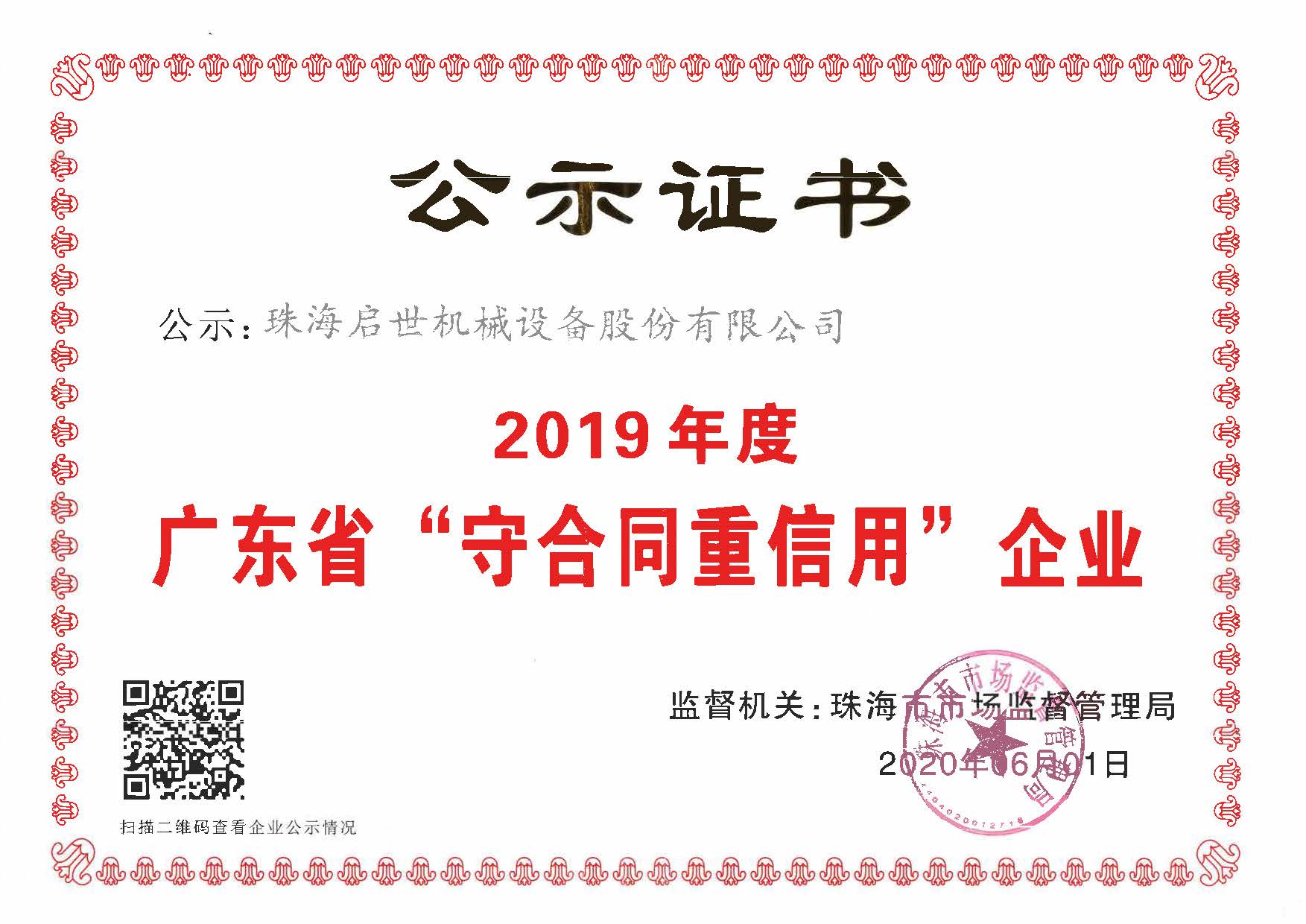 廣東省守合同重信用企業(yè)證書