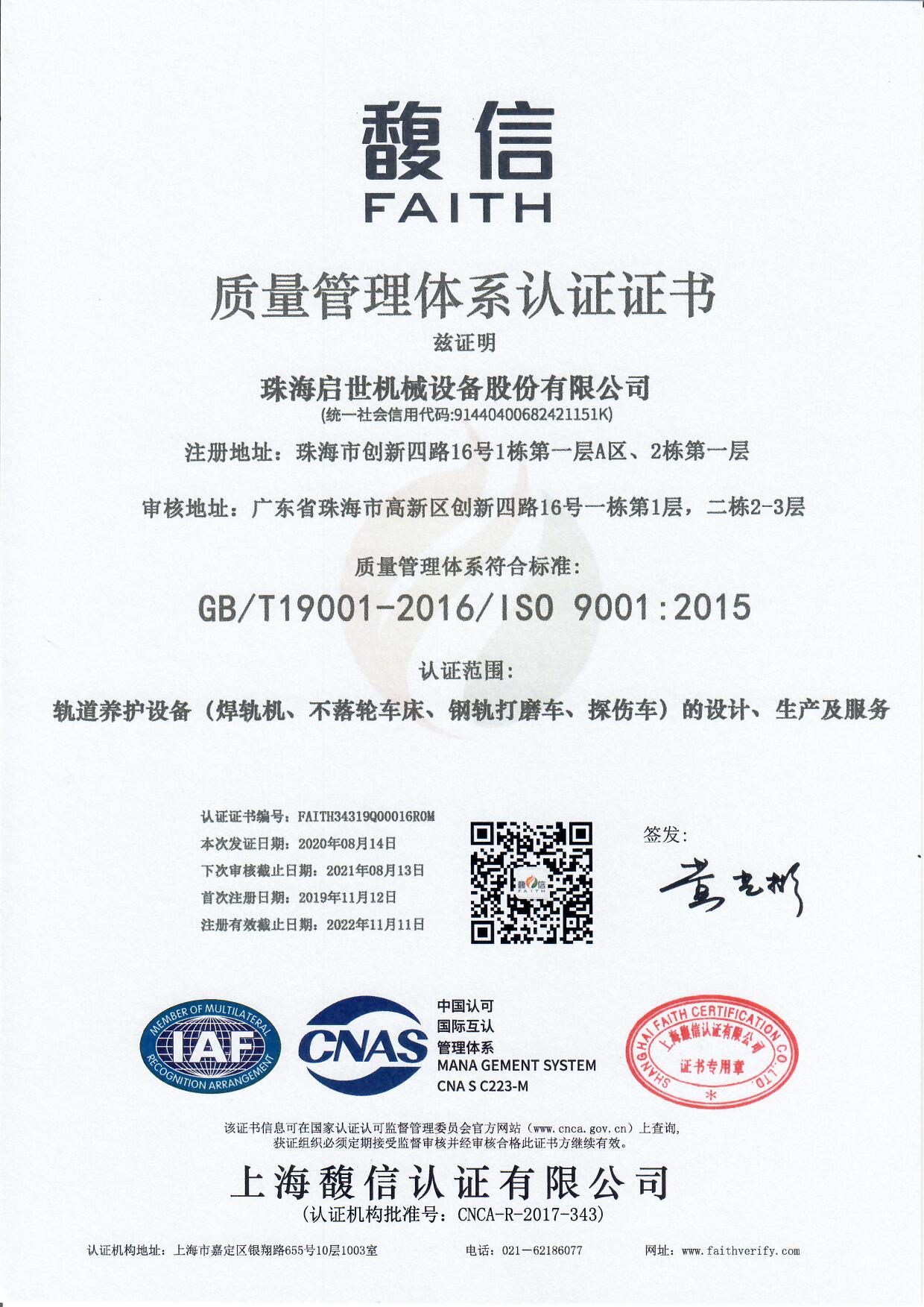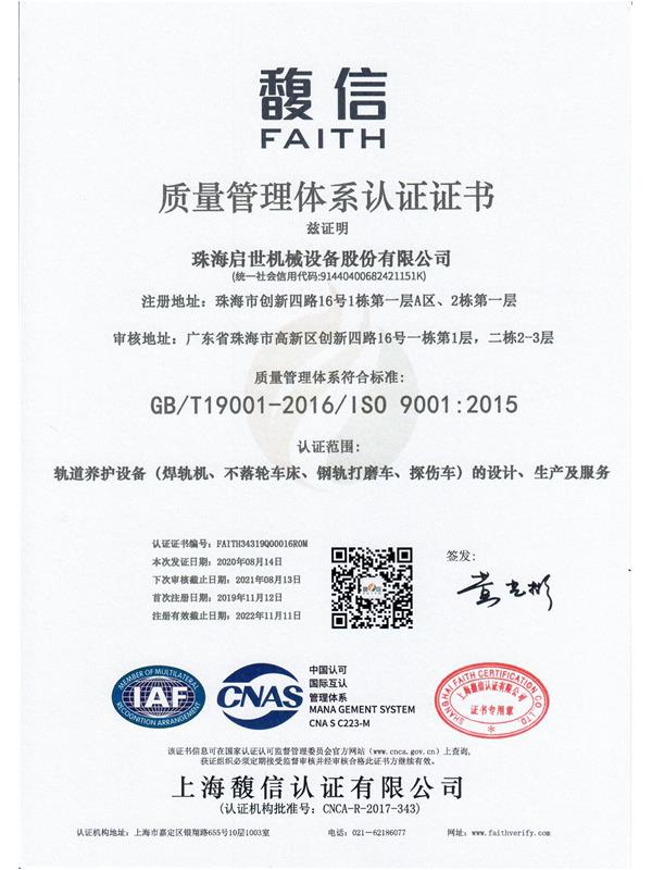 質(zhì)量管理體系認證證書