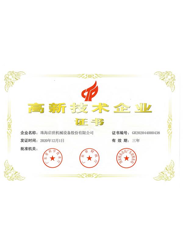 高新技術(shù)企業(yè)證書